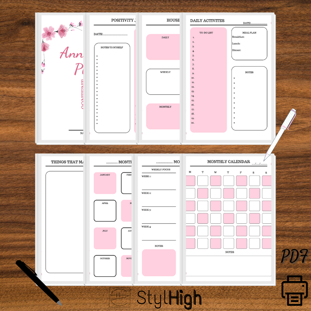 - Download and print the PDF file of the planner you have purchased. Remember, you can print as many copies as you want of any page. This way, you will have a physical planner with you at all times.
