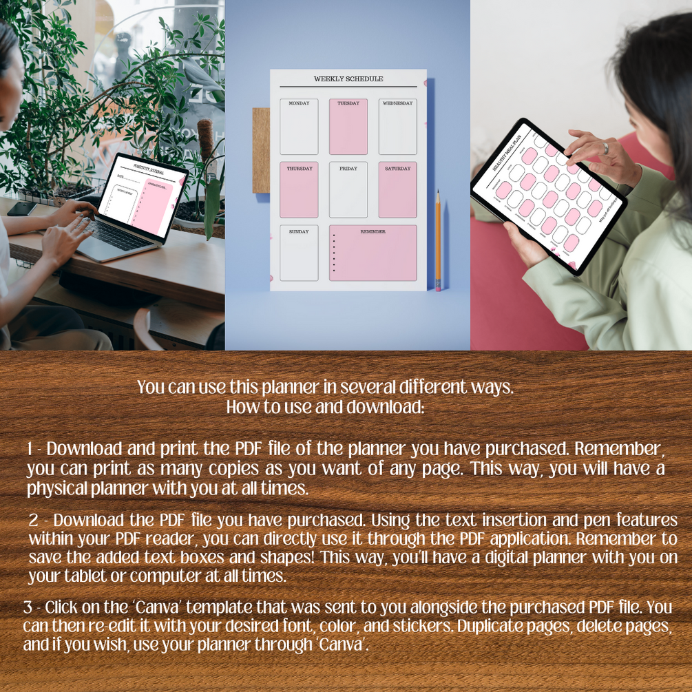 You can use this planner in several different ways. How to use and download: